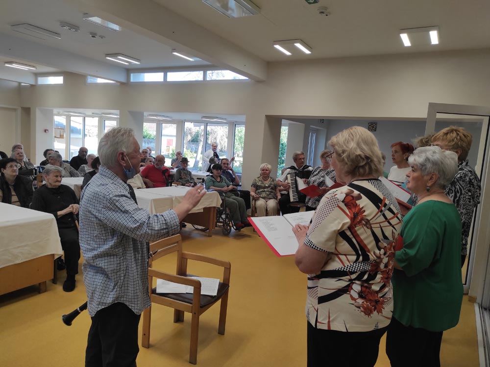 Наступ намењен корисницима дома извела је певачка група културно-уметничког друштва, у пратњи хармонике и кларинета. Испред Геронтолошког центра „Нови Сад“ госте је поздравила Ружица Вукић Рајић, организаторка промотивних активности, која им је и уручила пригодне поклоне рађене у радној терапији дома. У оквиру једночасовног програма, пред пуном салом, наступили су са неколико староградских песама, а корисници су их наградили великим аплаузом.
