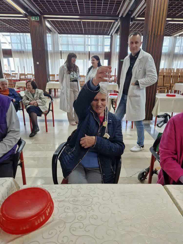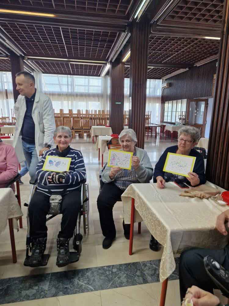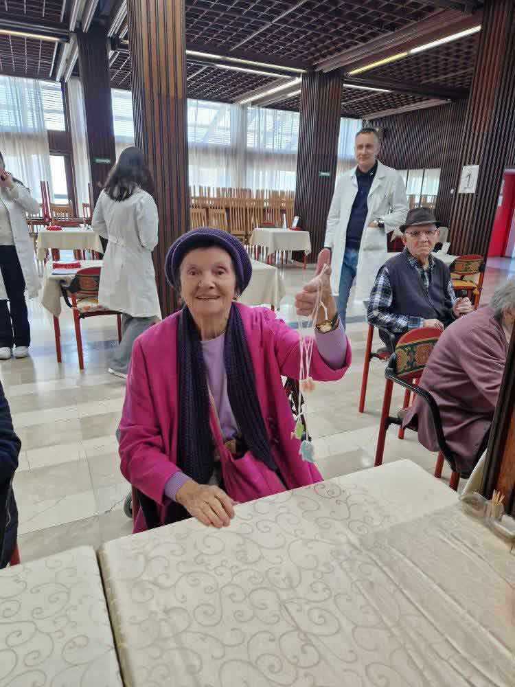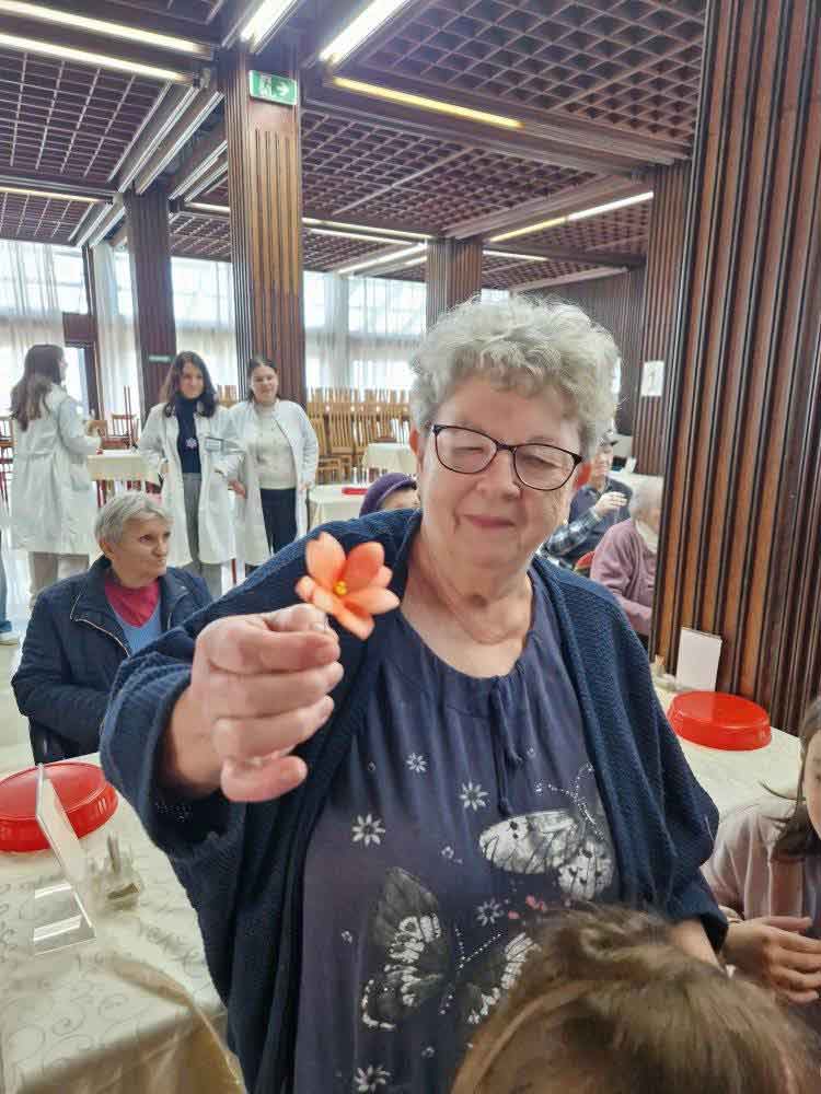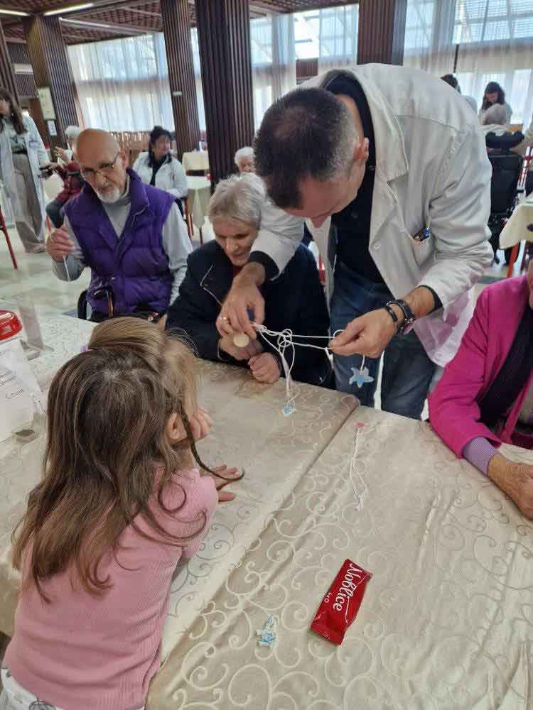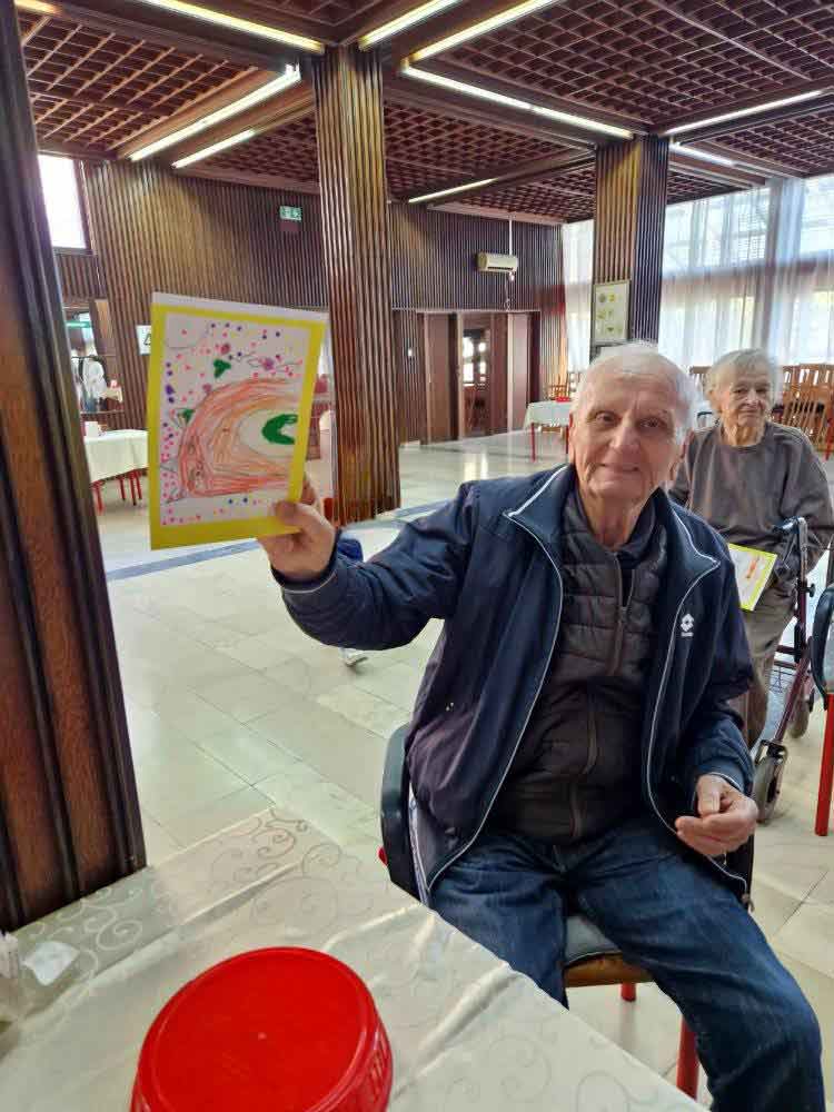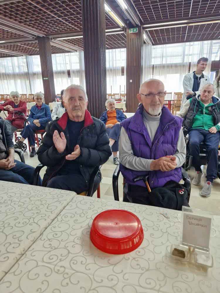 Деца су, уз помоћ својих васпитачица, припремила песмице и поклоне за баке и деке у дому. Корисници су им узвратили загрљајима и цветићима, које су правили у радној терапији дома.