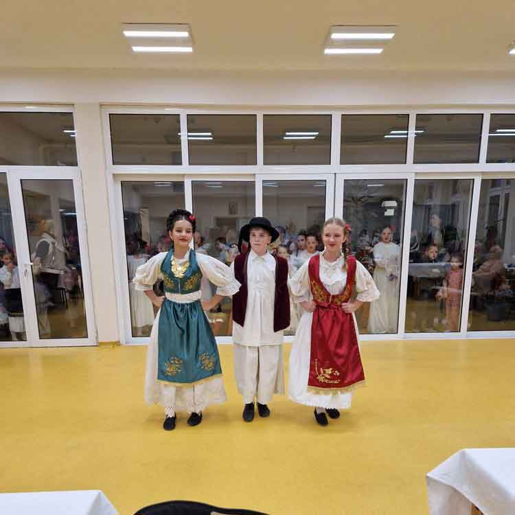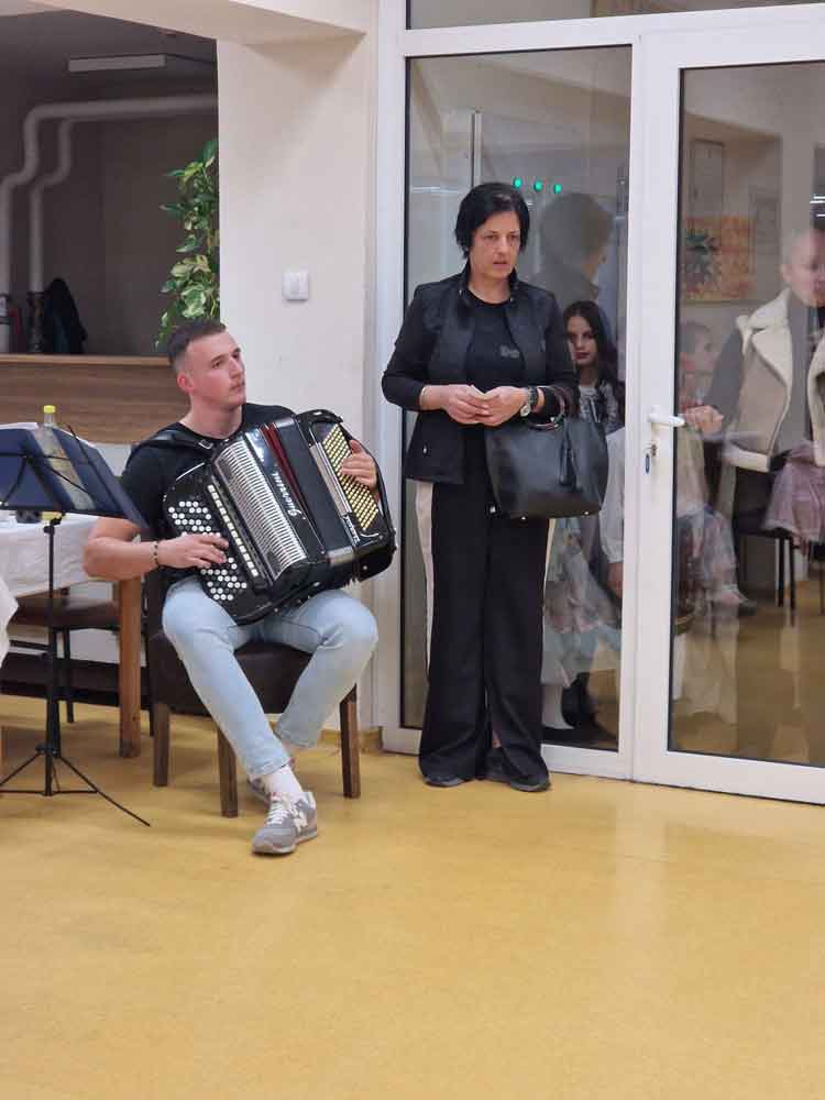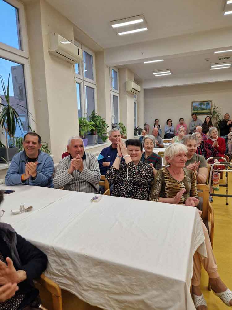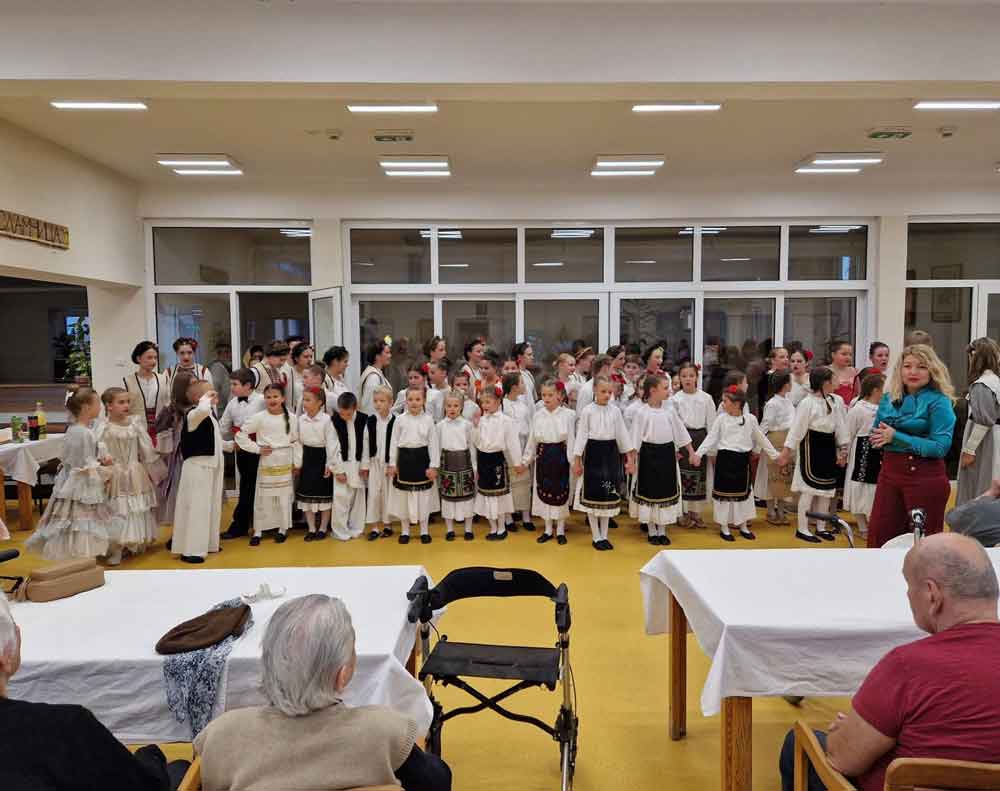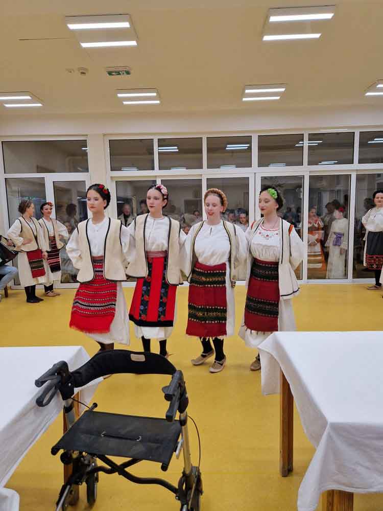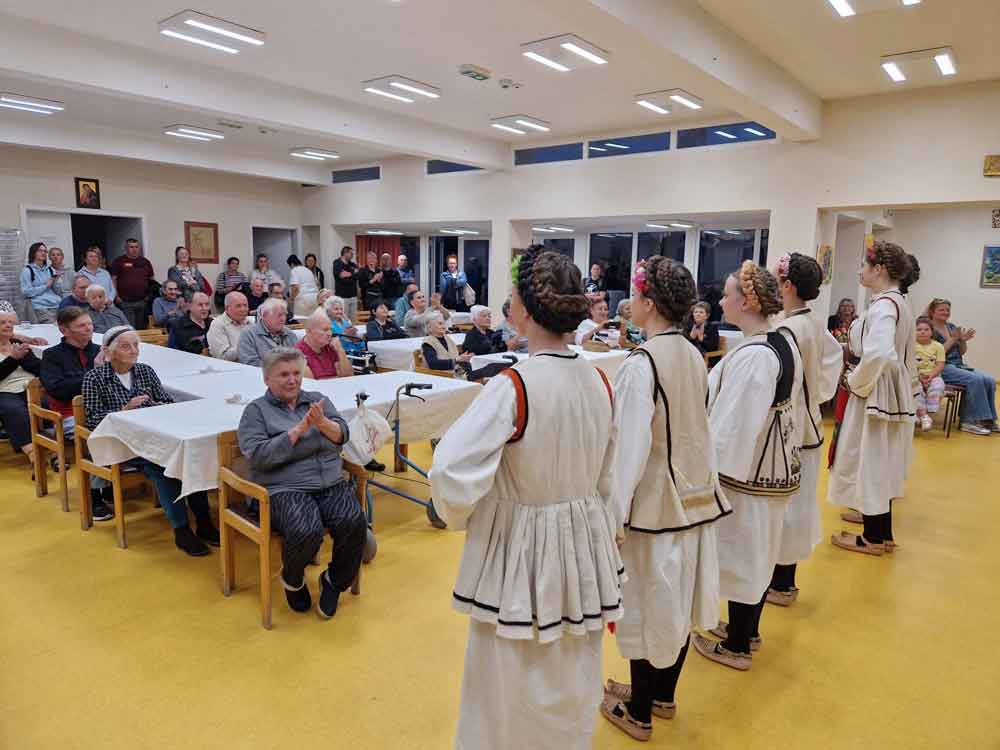 У једночасовном, богатом програму наступале су све фолклорне групе културног центра, од најмлађих до најстаријих јуниора. Песмом и игром, талентована деца, оплеменила су дан нашим пензионерима.