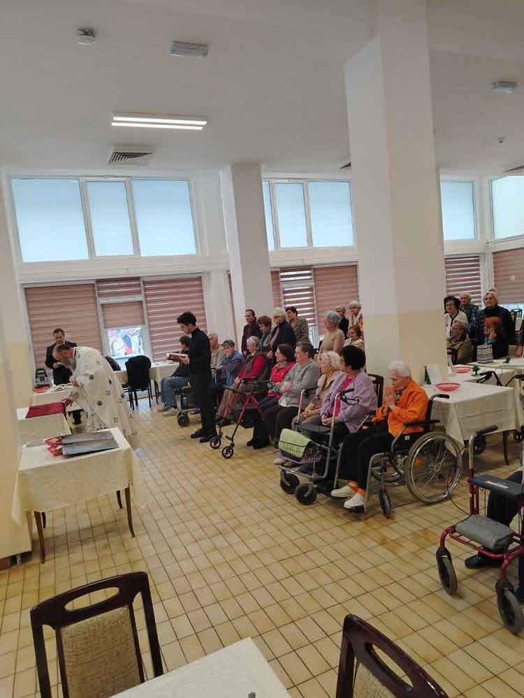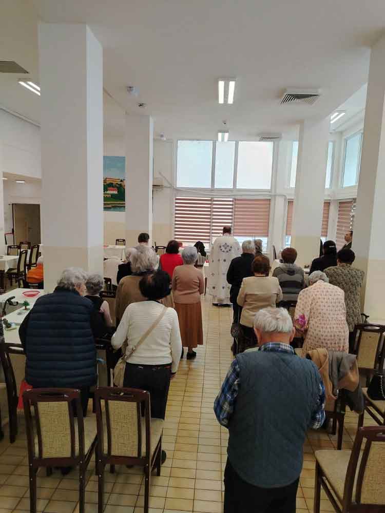 Литургија и миса, као и причест корисника одржане су у сва три дома Геронтолошког центра " Нови Сад", у Дому Лиман, Дому Ново насеље и у Дому Футог. Радни терапеути и инструктори позвали су и довели заинтересоване кориснике у трпезарију да присуствују служби. Они који нису могли да присуствују, због свог здравственог стања, обишли су свештеници у стационару дома.
