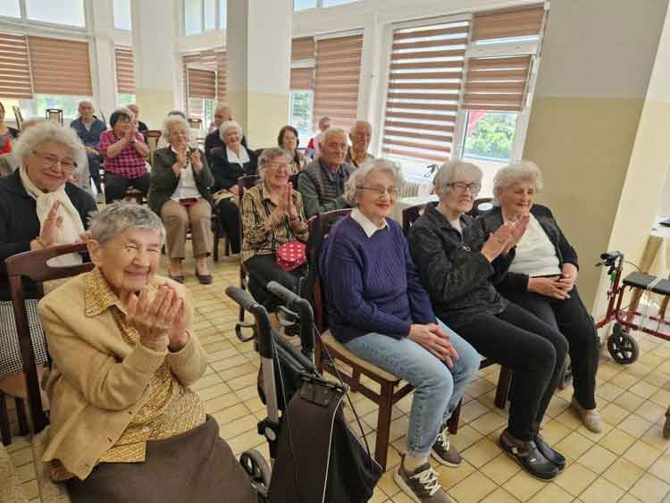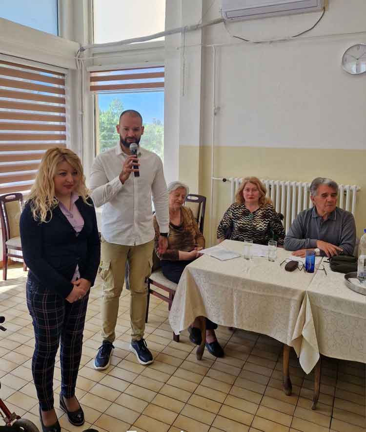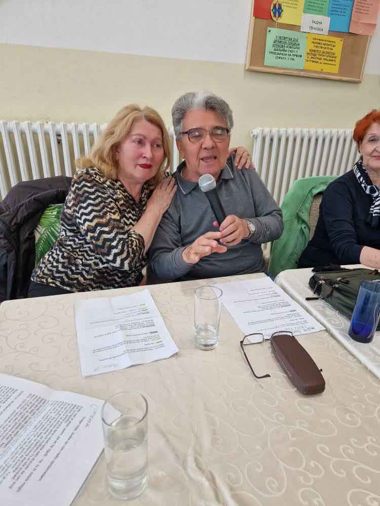 Чланови драмске секције су аматерски глумци, који су извели шаљиви скеч о мушко- женским разговорима и увеселили дан корисницима дома.